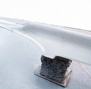Next came the painting. This was no simple feat for a number of reasons. Very few color photos of the Futura exist, and most of those are quite old and the colors have faded and/or shifted. But using those as a basis, along with the Collectable Automobile article, which described the color as a “pearlescent, frost-blue white” I had an idea of what I wanted to do.